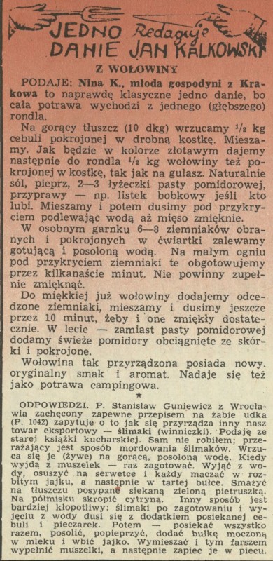 Archiwum / Jedno danie nr 1046 (17/1965) 05/12 Podziel się Tytuł Jedno danie z wołowiny Autor Jan Kalkowski Rubryka Jedno danie Artykuł z numeru 1046 (17/1965) Data wydania 25 kwietnia 1965 Tagi gastronomia kulinaria przepis kulinarny mięso ślimaki