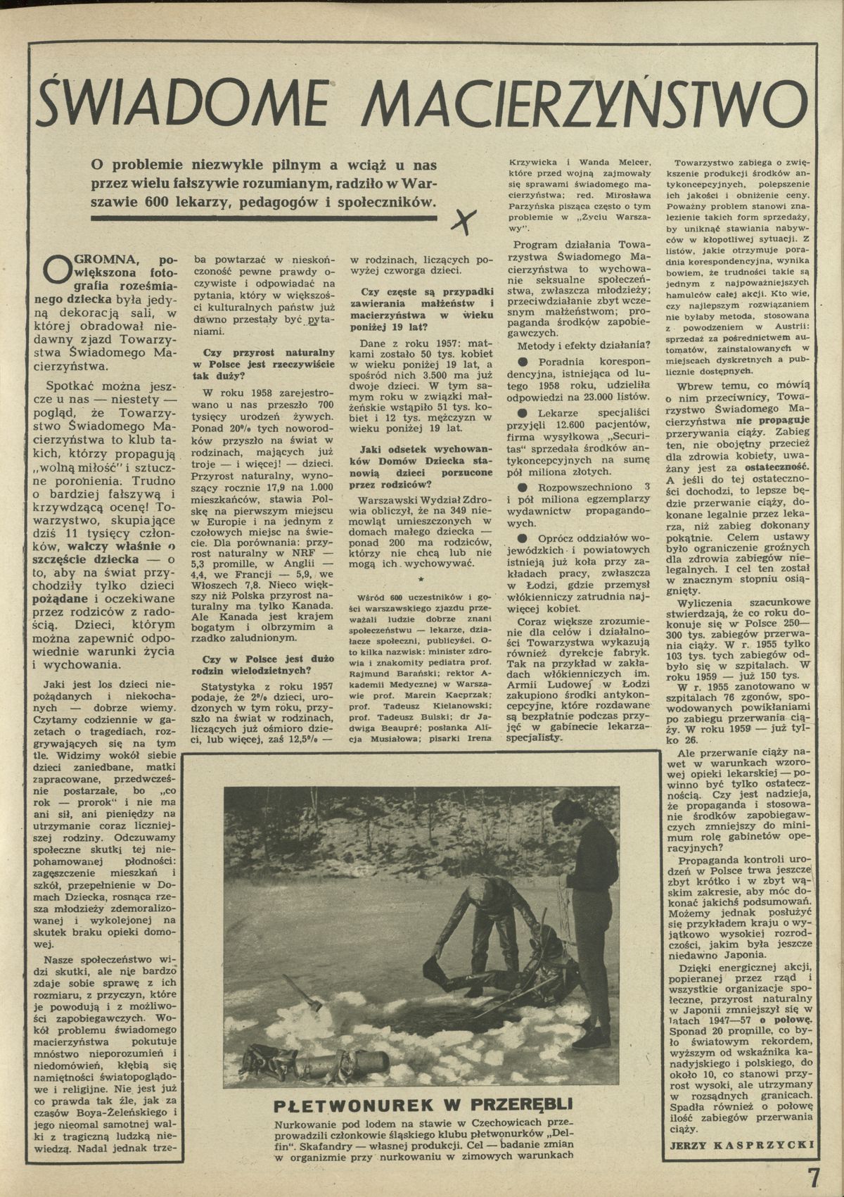 Archiwum / Artykuł nr 774 (06/1960) 31759/123969 Podziel się Tytuł Świdome macierzyństwo Autor Jerzy Kasprzycki Kategoria Artykuł Artykuł z numeru 774 (6/1960) Data wydania 7 lutego 1960