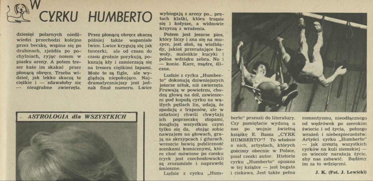 Archiwum / Artykuł nr 756 (40/1959) 72/72 Podziel się Tytuł W cyrku Humberto Autor J. K. Kategoria Artykuł Artykuł z numeru 756 (40/1959) Data wydania 4 października 1959 Tagi cyrk