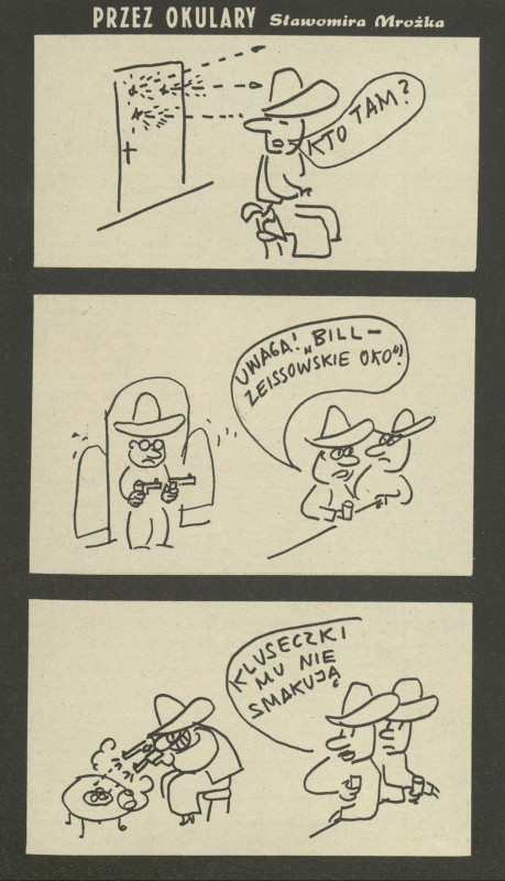 Archiwum / Przez okulary Sławomira Mrożka nr 1110 (29/1966) 29/51 Podziel się Tytuł Przez okulary Sławomira Mrożka Autor Sławomir Mrożek Rubryka Przez okulary Sławomira Mrożka Artykuł z numeru 1110 (29/1966) Prawa Diogenes Verlag AG Data wydania 17 lipca 1966 Tagi satyra absurd żart rysunkowy kowboj