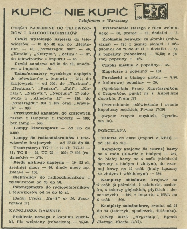 Archiwum / Kupić - nie kupić nr 1110 (29/1966) 46490/123969 Podziel się Tytuł Kupić- nie kupić Rubryka Kupić - nie kupić Artykuł z numeru 1110 (29/1966) Data wydania 17 lipca 1966