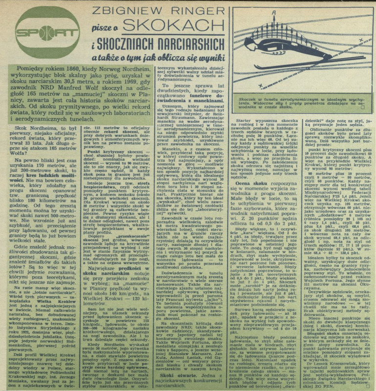 Archiwum / Sport nr 1449 (02/1973) 01/75 Podziel się Tytuł Zbigniew Ringer pisze o skokach i skoczniach narciarskich Autor Zbigniew Ringer Rubryka Sport Artykuł z numeru 1449 (2/1973) Data wydania 14 stycznia 1973