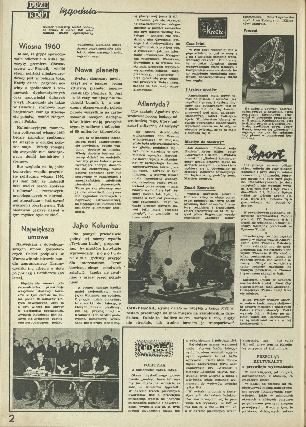 Archiwum / Co piszą inni nr 780 (12/1960) 32030/123969 Podziel się Tytuł Co piszą inni Rubryka Co piszą inni Artykuł z numeru 780 (12/1960) Data wydania 20 marca 1960