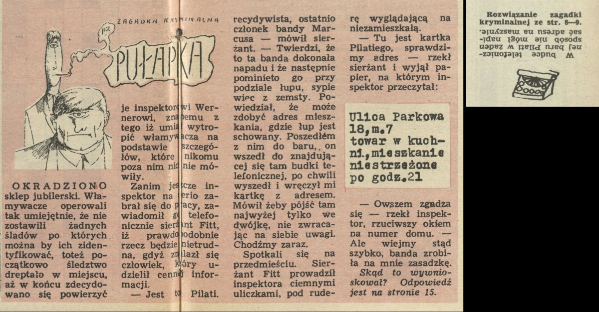 Archiwum / Zagadka kryminalna nr 1119 (38/1966) 88/396 Podziel się Tytuł Zagadka kryminalna: pułapka Rubryka Zagadka kryminalna Artykuł z numeru 1119 (38/1966) Data wydania 18 września 1966 Tagi zagadka kryminalna
