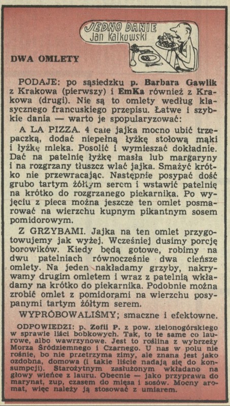 Archiwum / Jedno danie nr 1119 (38/1966) 46884/123969 Podziel się Tytuł Dwa omlety Autor Jan Kalkowski Rubryka Jedno danie Artykuł z numeru 1119 (38/1966) Data wydania 18 września 1966 Tagi gastronomia kulinaria przepis kulinarny jajka pizza grzyby