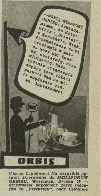 Archiwum / Reklamy nr 468 (13/1954) 95/297 Podziel się Tytuł Mówią megafony Orbisu Rubryka Reklamy Artykuł z numeru 468 (13/1954) Data wydania 28 marca 1954