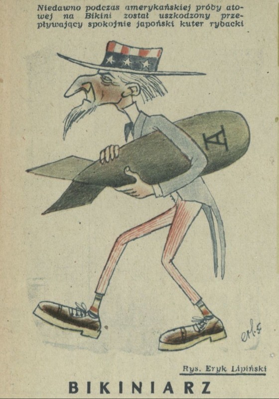 Archiwum / Rozmaitości [old] nr 468 (13/1954) 104/181 Podziel się Tytuł Bikiniarz Autor Eryk Lipiński Rubryka Rozmaitości [old] Artykuł z numeru 468 (13/1954) Data wydania 28 marca 1954 Tagi propaganda karykatura satyra polityka