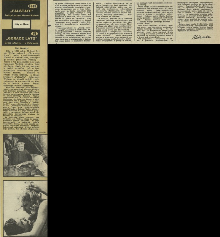 Archiwum / Listy o filmie nr 1208 (22/1968) 50184/123969 Podziel się Tytuł Listy o filmie Autor Aleksandra Rubryka Listy o filmie Artykuł z numeru 1208 (22/1968) Data wydania 2 czerwca 1968 Tagi Falstaff Szekspir Welles Gorące lato Belgrad