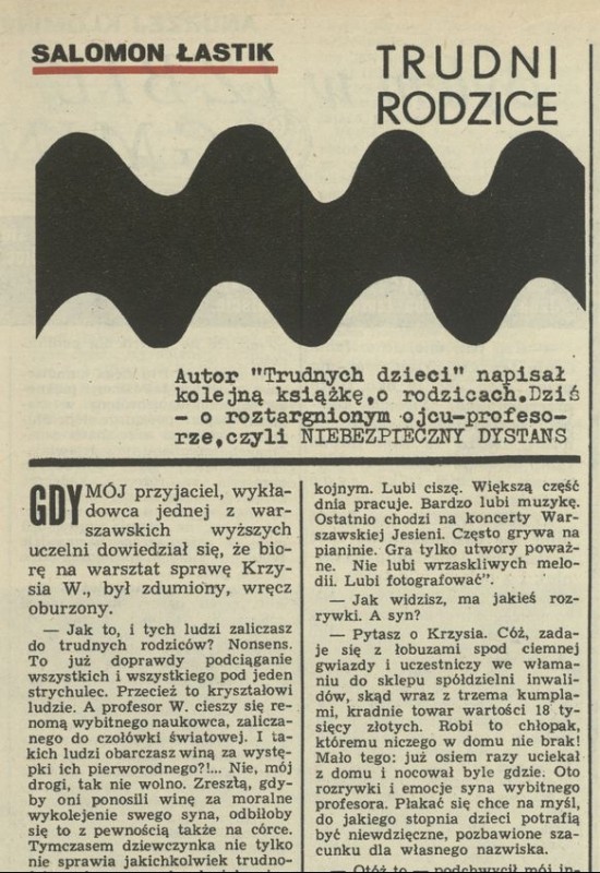 Archiwum / Reportaż nr 1120 (39/1966) 46900/123969 Podziel się Tytuł Trudni rodzice Autor Salomon Łastik Kategoria Reportaż Artykuł z numeru 1120 (39/1966) Data wydania 25 września 1966 Tagi trudni rodzice trudne dzieci