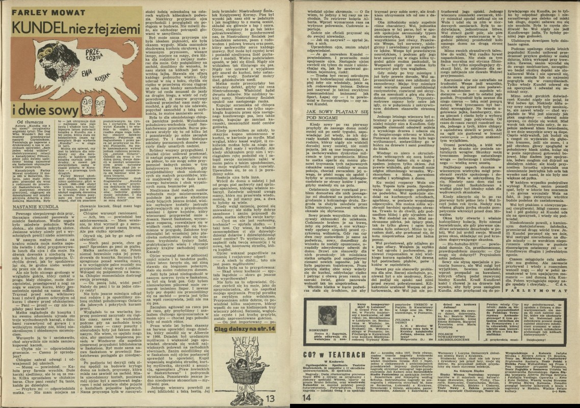 Archiwum / Proza nr 1208 (22/1968) 12/19 Podziel się Tytuł Kundel nie z tej ziemi i dwie sowy Autor Farley Mowat Kategoria Proza Artykuł z numeru 1208 (22/1968) Data wydania 2 czerwca 1968 Tagi Kanada kundel proza Farley Mowat