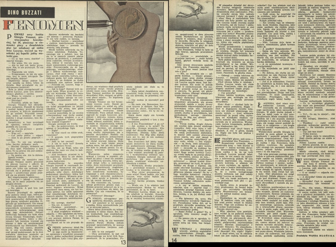 Archiwum / Proza nr 1210 (24/1968) 1/2 Podziel się Tytuł Fenomen Autor Dino Buzzati Wanda Błońska Kategoria Proza Artykuł z numeru 1210 (24/1968) Data wydania 16 czerwca 1968 Tagi literatura włoska