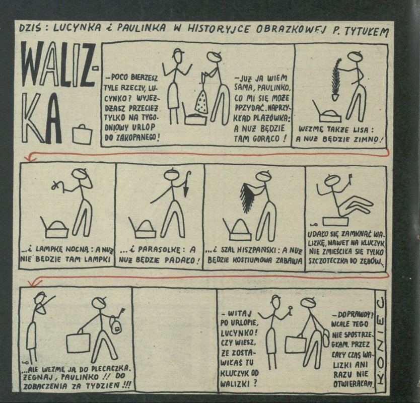 Archiwum / Dziś Lucynka i Paulinka nr 469 (14/1954) 17222/123969 Podziel się Tytuł Walizka Autor Lucynka i Paulinka Rubryka Dziś Lucynka i Paulinka Artykuł z numeru 469 (14/1954) Data wydania 4 kwietnia 1954 Tagi historyjka obrazkowa