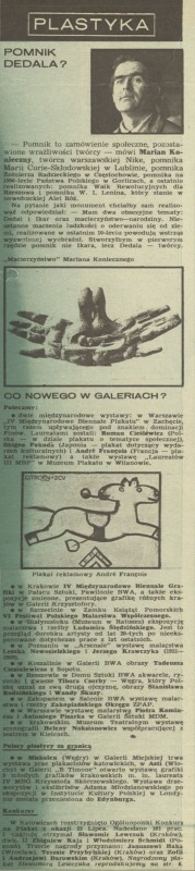 Archiwum / Kultura nr 1424 (30/1972) 58012/123969 Podziel się Tytuł Plastyka Kategoria Kultura Artykuł z numeru 1424 (30/1972) Data wydania 22 lipca 1972 Tagi Marian Konieczny rzeźbiarz plakaty konkursy