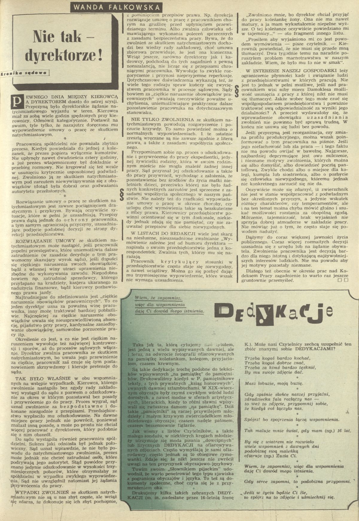 Archiwum / Kronika sądowa nr 1424 (30/1972) 657/881 Podziel się Tytuł Kronika sądowa: nie tak - dyrektorze! Autor Wanda Falkowska Rubryka Kronika sądowa Artykuł z numeru 1424 (30/1972) Data wydania 22 lipca 1972 Tagi scysja z dyrektorem zwolnienie ze skutkiem natychmiastowym