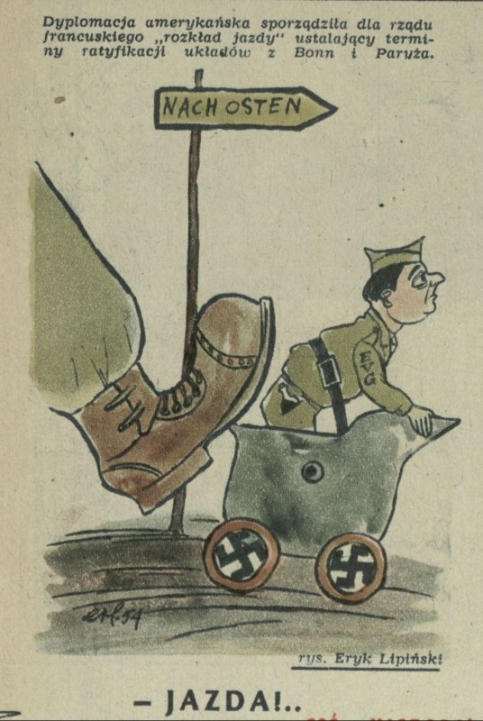 Archiwum / Rozmaitości [old] nr 469 (14/1954) 22/61 Podziel się Tytuł Jazda! Autor Eryk Lipiński Rubryka Rozmaitości [old] Artykuł z numeru 469 (14/1954) Data wydania 4 kwietnia 1954 Tagi propaganda karykatura satyra polityka Bonn