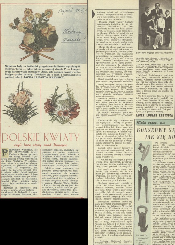 Archiwum / Relacja nr 1424 (30/1972) 34/59 Podziel się Tytuł Polskie kwiaty czyli love story znad Dunajca Autor Jacek Lubart-Krzysica Kategoria Relacja Artykuł z numeru 1424 (30/1972) Data wydania 22 lipca 1972 Tagi kwiaty bukiety miłość