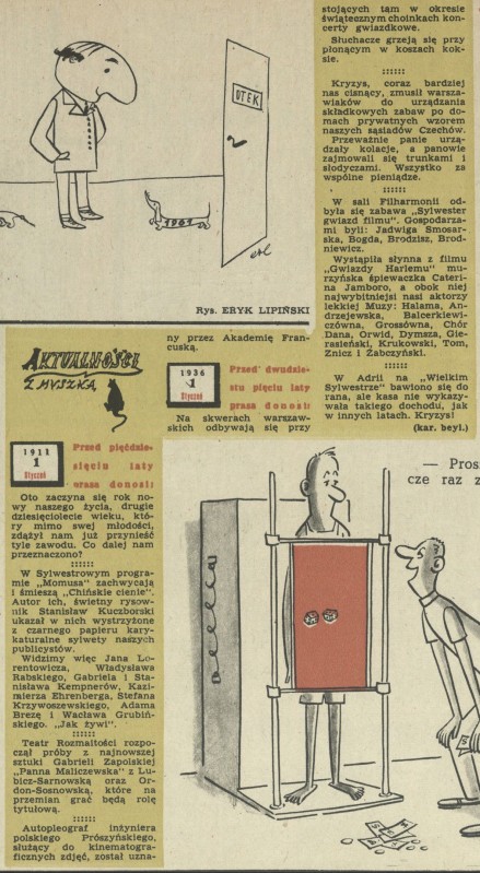 Archiwum / Aktualności z myszką nr 821 (01/1961) 834/834 Podziel się Tytuł Aktualności z myszą Autor Karolina Beylin Rubryka Aktualności z myszką Artykuł z numeru 821 (1/1961) Data wydania 1 stycznia 1961