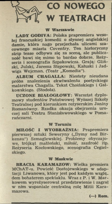 Archiwum / Teatr nr 787 (19/1960) 110/181 Podziel się Tytuł Co nowego w teatrach Autor Rom Rubryka Teatr Artykuł z numeru 787 (19/1960) Data wydania 8 maja 1960 Tagi teatr sztuka spektakl nowości