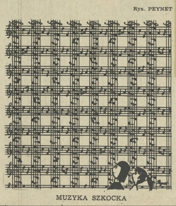 Archiwum / Rozmaitości [old] nr 787 (19/1960) 29804/108863 Podziel się Tytuł Muzyka szkocka Autor Peynet Rubryka Rozmaitości [old] Artykuł z numeru 787 (19/1960) Data wydania 8 maja 1960 Tagi rysunek humor dowcip