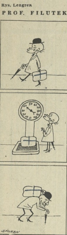 Archiwum / Profesor Filutek nr 822 (02/1961) 11/403 Podziel się Tytuł Prof. Filutek Autor Zbigniew Lengren Rubryka Profesor Filutek Artykuł z numeru 822 (2/1961) Data wydania 8 stycznia 1961 Tagi żart rysunkowy waga