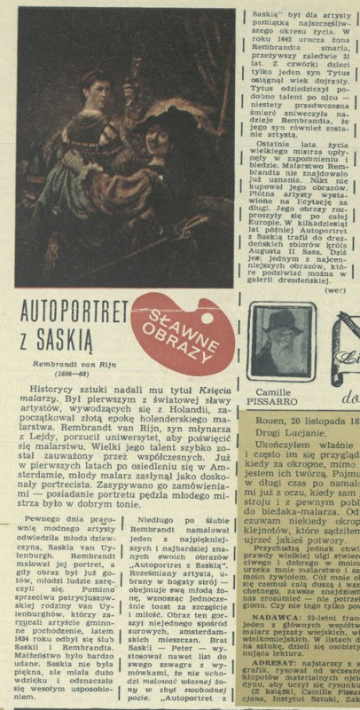 Archiwum / Sławne obrazy nr 1425 (31/1972) 56545/121061 Podziel się Tytuł Sławne obrazy. Autoportret z Saskią Autor Wer. Rubryka Sławne obrazy Artykuł z numeru 1425 (31/1972) Data wydania 30 lipca 1972 Tagi malarstwo sławne obrazy ciekawostki sztuka