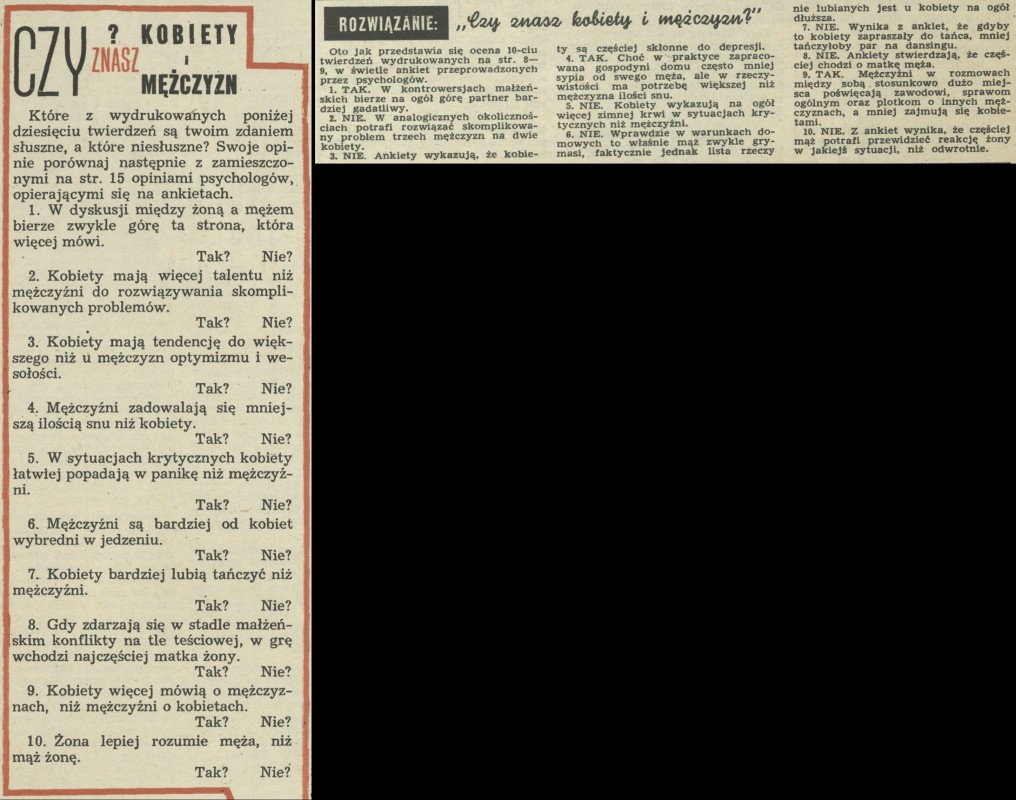 Archiwum / Rebusy nr 1222 (36/1968) 2/6 Podziel się Tytuł Czy znasz kobiety i mężczyzn? Rubryka Rebusy Artykuł z numeru 1222 (36/1968) Data wydania 8 września 1968 Tagi mężczyźni kobiety