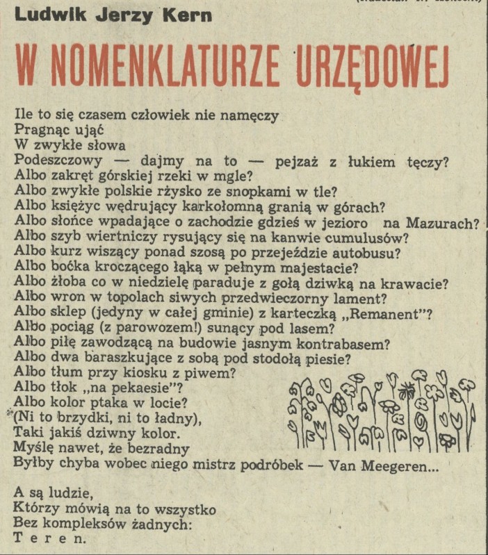Archiwum / Rozmaitości [old] nr 1216 (30/1968) 36/57 Podziel się Tytuł W nomenklaturze urzędowej Autor Ludwik Jerzy Kern Rubryka Rozmaitości [old] Artykuł z numeru 1216 (30/1968) Data wydania 28 lipca 1968