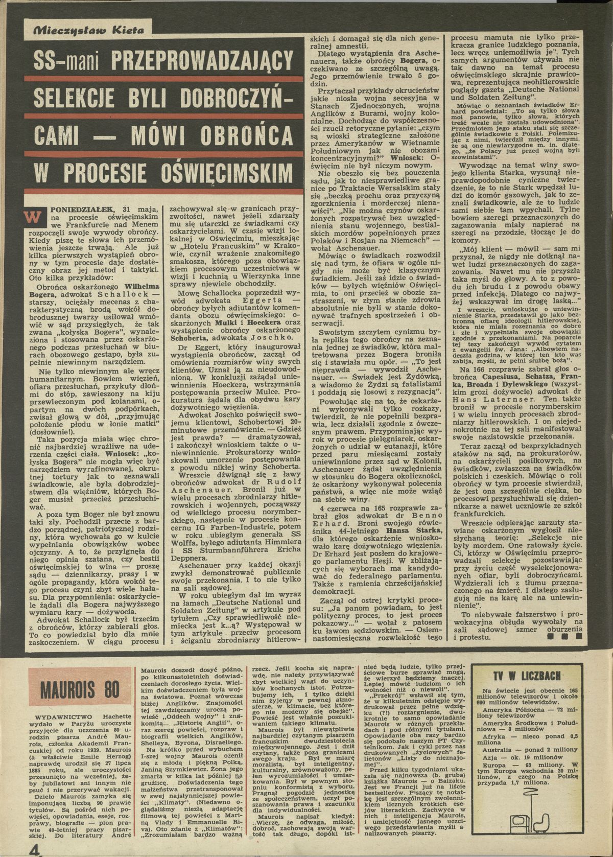 Archiwum / Artykuł nr 1056 (27/1965) 14/30 Podziel się Tytuł SS-mani przeprowadzający selekcje byli dobroczyńcami - mówi obrońca w procesie oświęcimskim Autor Mieczysław Kieta Kategoria Artykuł Artykuł z numeru 1056 (27/1965) Data wydania 4 lipca 1965 Tagi proces oświęcimski ss-mani