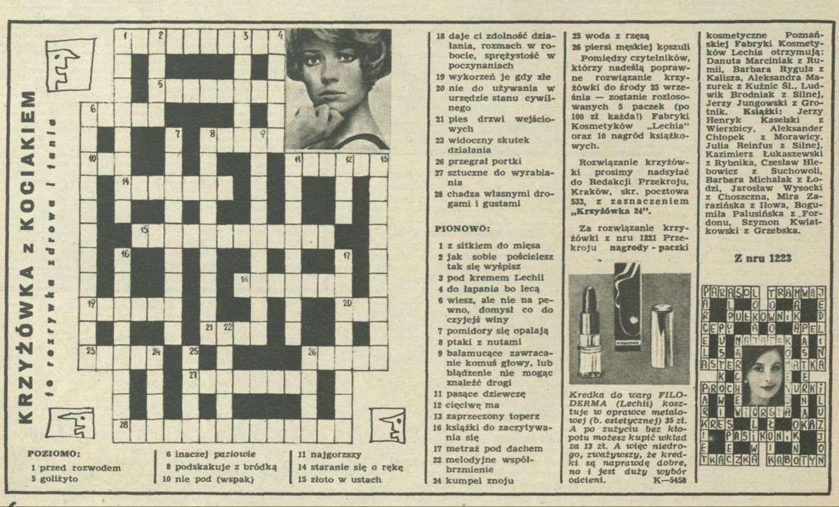 Archiwum / Krzyżówka z kociakiem nr 1224 (38/1968) 402/438 Podziel się Tytuł Krzyżówka z kociakiem Rubryka Krzyżówka z kociakiem Artykuł z numeru 1224 (38/1968) Data wydania 22 września 1968