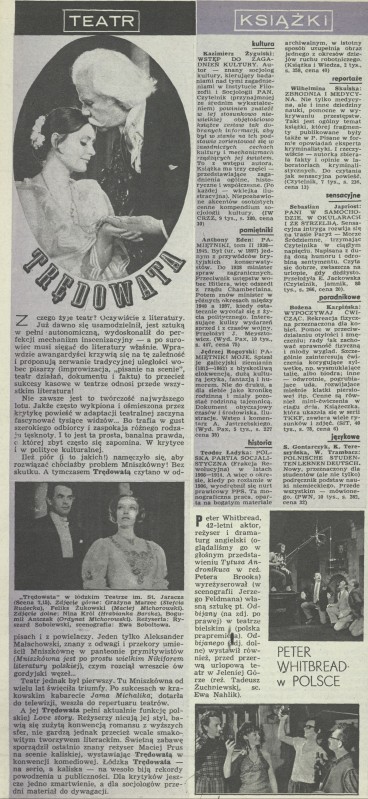 Archiwum / Teatr nr 1427 (33/1972) 14/194 Podziel się Tytuł Teatr Rubryka Teatr Artykuł z numeru 1427 (33/1972) Data wydania 13 sierpnia 1972 Tagi Trędowata Teatr im. Jaracza Łódź