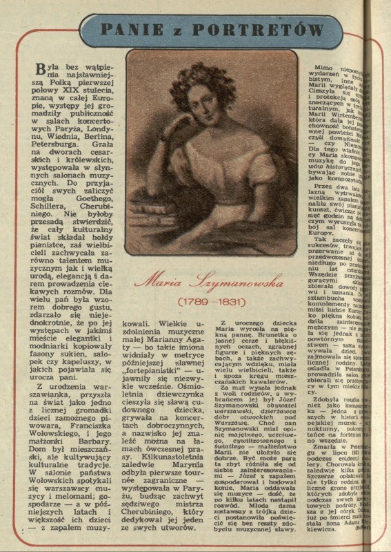 Archiwum / Różności nr 1885 (21/1981) 77625/123969 Podziel się Tytuł Panie z portretów. Maria Szymanowska (1789-1831) Autor BoWer Kategoria Różności Artykuł z numeru 1885 (21/1981) Data wydania 24 maja 1981 Tagi pianistka kompozytorka muzyka