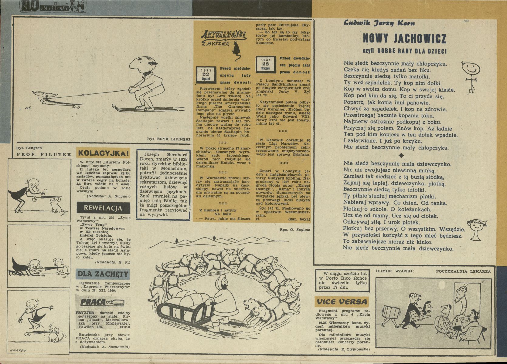 Archiwum / Rozmaitości [old] nr 824 (04/1961) 23/449 Podziel się Tytuł Nowy Jachowicz Autor Ludwik Jerzy Kern Rubryka Rozmaitości [old] Artykuł z numeru 824 (4/1961) Data wydania 22 stycznia 1961