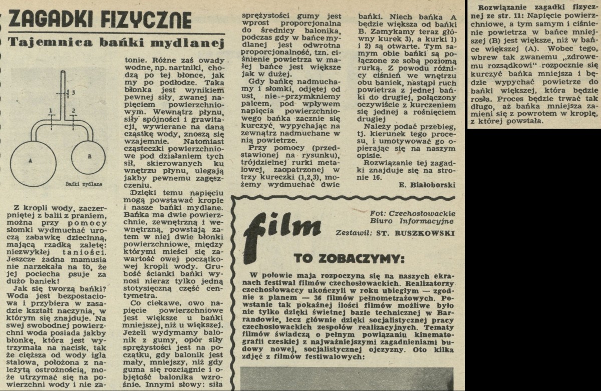 Archiwum / Łamigłówki Przekroju nr 266 (20/1950) 8328/123969 Podziel się Tytuł Zagadki fizyczne - Tajemnica bańki mydlanej Autor Eustachy Białoborski Rubryka Łamigłówki Przekroju Artykuł z numeru 266 (20/1950) Data wydania 14 maja 1950 Tagi zagadka zgadywanka łamigłówka zagadki fizyczne