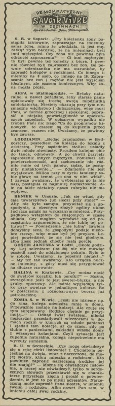 Archiwum / Demokratyczny savoir-vivre nr 454-55 (51-52/1953) 16534/123969 Podziel się Tytuł Demokratyczny savoir-vivre Autor Jan Kamyczek Rubryka Demokratyczny savoir-vivre Artykuł z numeru 454-55 (51/1953) Data wydania 22 grudnia 1953 Tagi obyczaje kultura