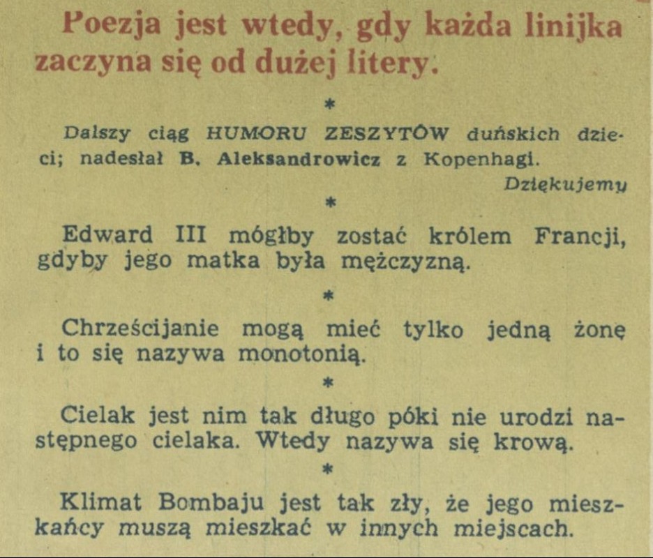 Archiwum / Humor zeszytów szkolnych nr 1629 (26/1976) 68617/123969 Podziel się Tytuł Humor zeszytów Rubryka Humor zeszytów szkolnych Artykuł z numeru 1629 (26/1976) Data wydania 27 czerwca 1976