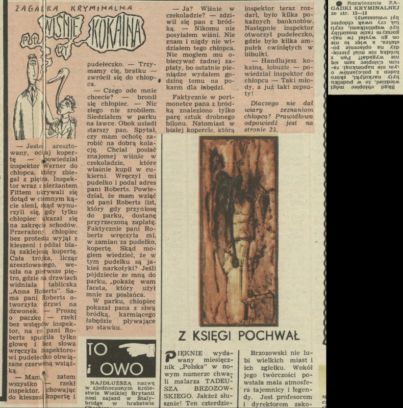 Archiwum / Zagadka kryminalna nr 884 (11/1962) 162/606 Podziel się Tytuł Zagadka kryminalna Rubryka Zagadka kryminalna Artykuł z numeru 884 (11/1962) Data wydania 18 marca 1962