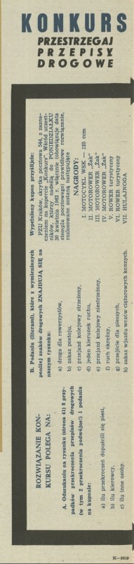 Archiwum / Konkurs nr 887-89 (14-16/1962) 704/2403 Podziel się Tytuł Konkurs - przestrzegaj przepisy drogowe Rubryka Konkurs Artykuł z numeru 887-89 (14/1962) Data wydania 8 kwietnia 1962