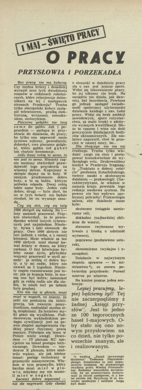 Archiwum / Artykuł nr 890 (17/1962) 37127/123969 Podziel się Tytuł 1 maj - Święto Pracy. O pracy - przyslowia i porzekadła Kategoria Artykuł Artykuł z numeru 890 (17/1962) Data wydania 29 kwietnia 1962