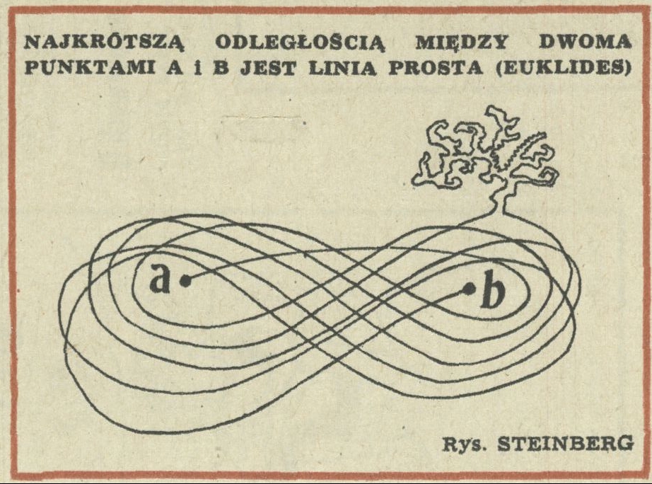 Archiwum / Rozmaitości [old] nr 890 (17/1962) 37168/123969 Podziel się Tytuł Najkrótszą odległością między dwoma punktami... Autor Saul Steinberg Rubryka Rozmaitości [old] Artykuł z numeru 890 (17/1962) Data wydania 29 kwietnia 1962