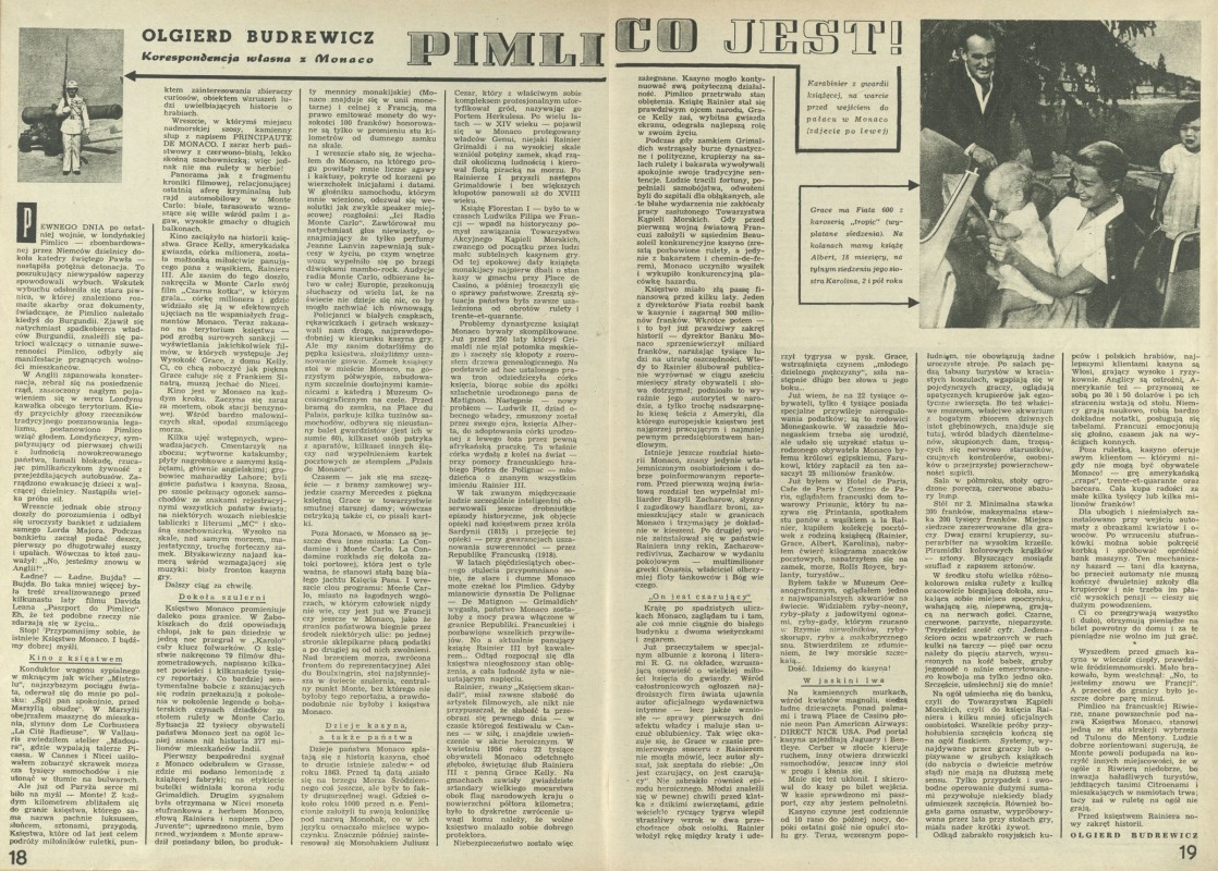Archiwum / korespondencja własna "Przekroju" nr 760 (44/1959) 04/210 Podziel się Tytuł Pimli co jest! Autor Olgierd Budrewicz Rubryka korespondencja własna "Przekroju" Artykuł z numeru 760 (44/1959) Data wydania 1 listopada 1959 Tagi Monako podróż
