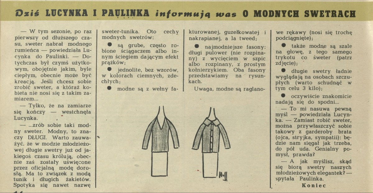 Archiwum / Dziś Lucynka i Paulinka nr 761 (45/1959) 20/23 Podziel się Tytuł O modnych swetrach Rubryka Dziś Lucynka i Paulinka Artykuł z numeru 761 (45/1959) Data wydania 8 listopada 1959