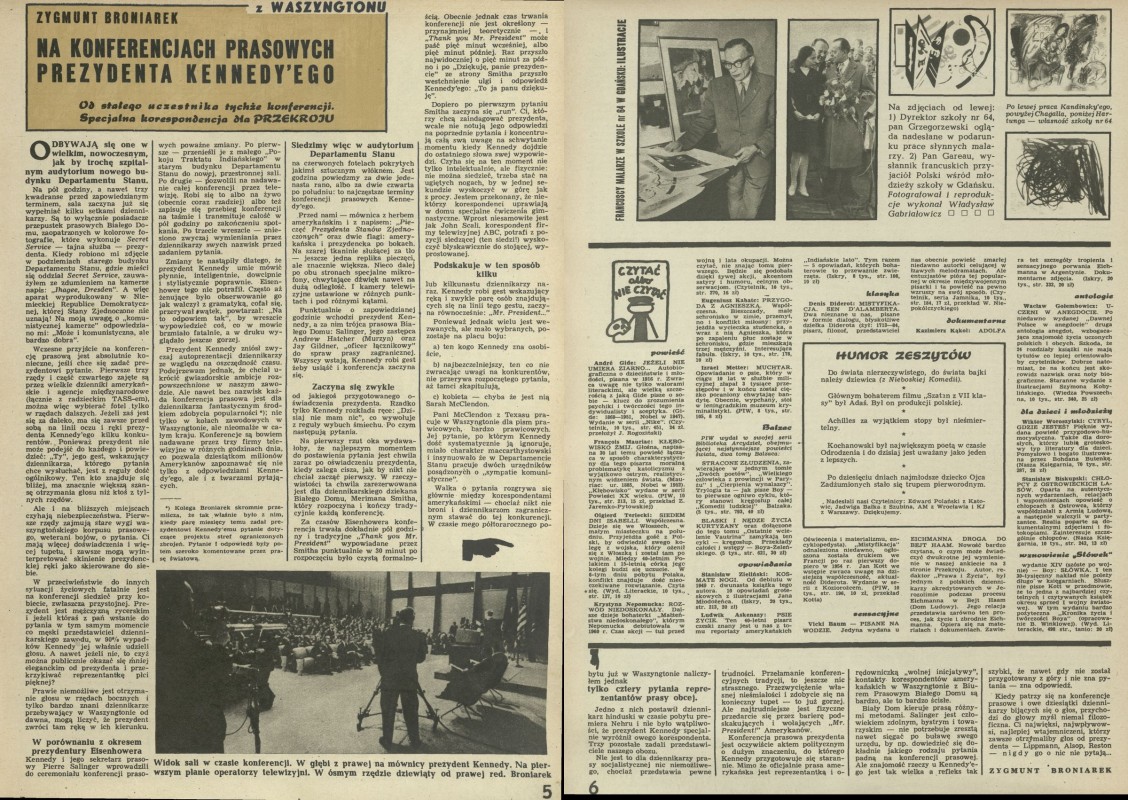 Archiwum / korespondencja własna "Przekroju" nr 891 (18/1962) 84972/121061 Podziel się Tytuł Na konferencjach prasowych prezydenta Kennedy'ego Autor Zygmunt Broniarek Rubryka korespondencja własna "Przekroju" Artykuł z numeru 891 (18/1962) Data wydania 6 maja 1962