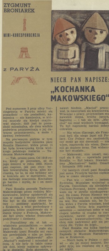 Archiwum / korespondencja własna "Przekroju" nr 1429 (35/1972) 81/324 Podziel się Tytuł Niech pan napisze: kochanka Makowskiego Autor Zygmunt Broniarek Rubryka korespondencja własna "Przekroju" Artykuł z numeru 1429 (35/1972) Data wydania 27 sierpnia 1972 Tagi Paryż kochanka Makowskiego