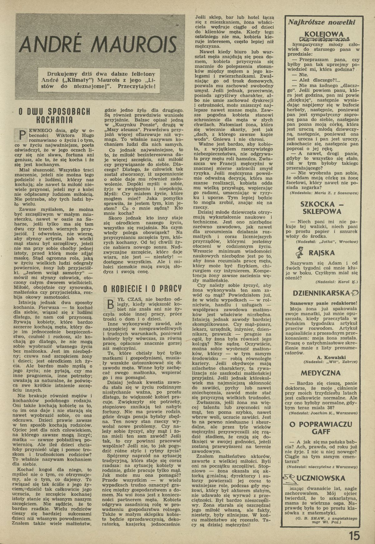 Archiwum / Felieton nr 799 (31/1960) 66/650 Podziel się Tytuł O dwu sposobach kochania Autor Andre Maurois Kategoria Felieton Artykuł z numeru 799 (31/1960) Data wydania 31 lipca 1960