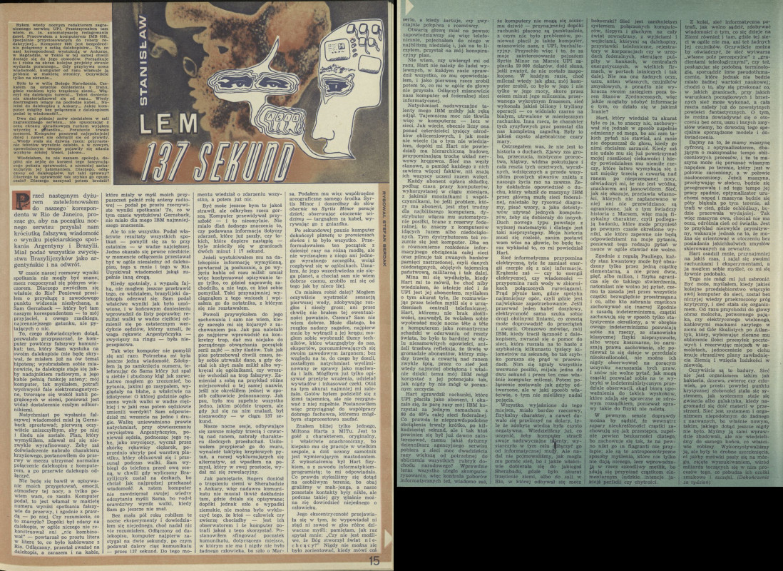 Archiwum / Proza nr 1429 (35/1972) 53/90 Podziel się Tytuł 137 sekund (2) Autor Stanisław Lem Kategoria Proza Artykuł z numeru 1429 (35/1972) Data wydania 27 sierpnia 1972 Tagi proza opowiadanie science fiction fantastyka