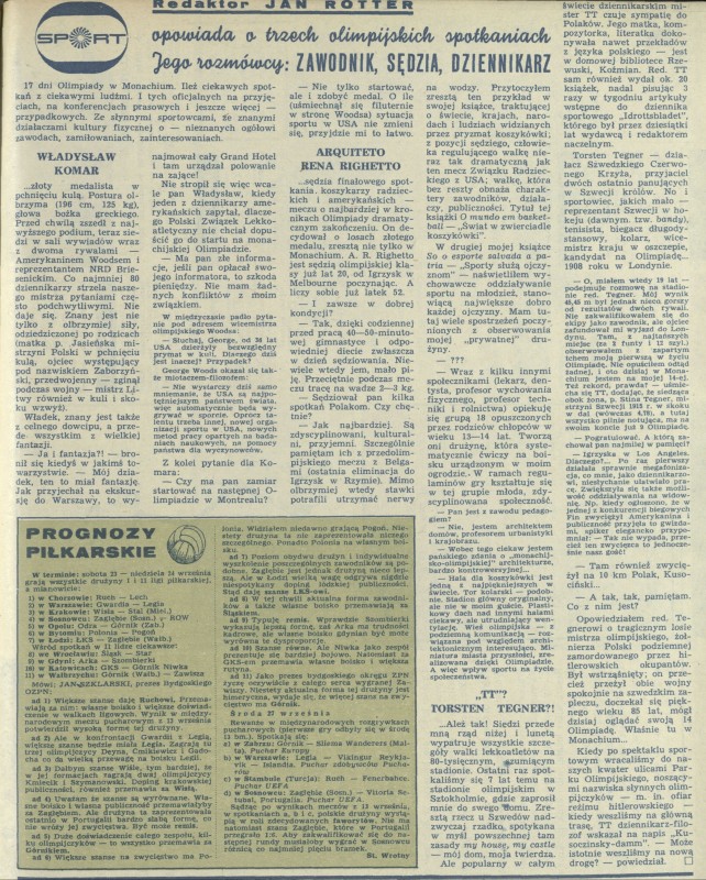 Archiwum / Sport nr 1433 (39/1972) 28/78 Podziel się Tytuł Sport Autor Jan Rotter Rubryka Sport Artykuł z numeru 1433 (39/1972) Data wydania 24 września 1972 Tagi sport wywiad