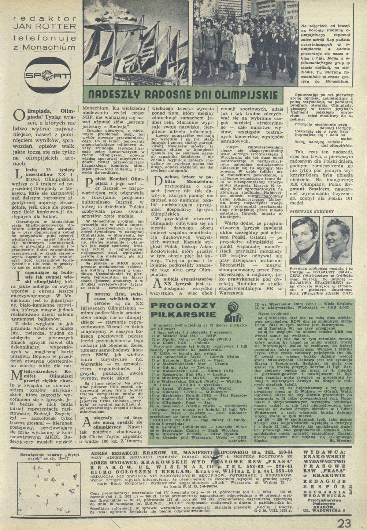 Archiwum / Sport nr 1430 (36/1972) 32/64 Podziel się Tytuł Nadeszły radosne dni olimpijskie Autor Jan Rotter Rubryka Sport Artykuł z numeru 1430 (36/1972) Data wydania 3 września 1972 Tagi igrzyska olimpijskie Monachium