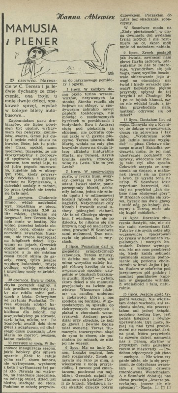 Archiwum / Felieton nr 904 (31/1962) 37815/123969 Podziel się Tytuł Mamusia i plener Autor Hanna Ablewicz Kategoria Felieton Artykuł z numeru 904 (31/1962) Data wydania 5 sierpnia 1962 Tagi wakacje