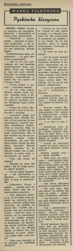 Archiwum / Kronika sądowa nr 920 (47/1962) 04/35 Podziel się Tytuł Pyskówka klasyczna Autor Wanda Falkowska Rubryka Kronika sądowa Artykuł z numeru 920 (47/1962) Data wydania 25 listopada 1962