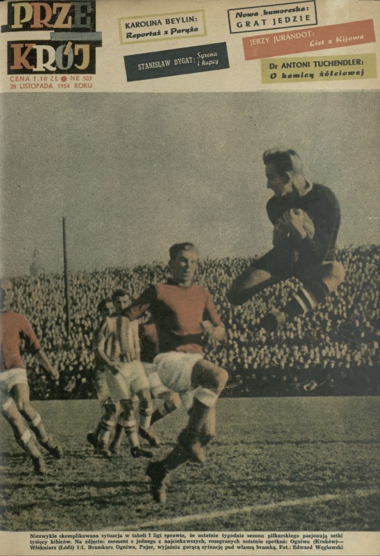 Archiwum / Okładki Przekroju nr 503 (48/1954) 151/2491 Podziel się Tytuł Okładka Autor Edward Węglowski Rubryka Okładki Przekroju Artykuł z numeru 503 (48/1954) Data wydania 28 listopada 1954 Tagi pilka nożna bramka mecz Pajor